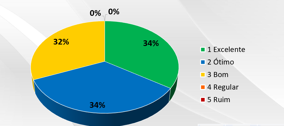 Com relação a apresentação visual, o Sistema e-TEÓRIKA recebeu avaliações Excelentes, Ótimas e Boas de 92% dos Clientes. Já a facilidade operacional do Sistema e-TEÓRIKA alcançou 89%.